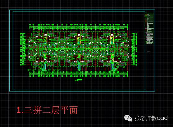 开始画图: 通过以上几个基准图,最后组合成两拼图和三拼图 这样处理,能达到一个好处,改一个其他全部更改。我在基础中,使用动态块,对单个户型的图元修改,会使其他户型同时更改,这样一个地方的修改,就可以同时修改本图中所有的图元,同时更改五套图纸中的所有布置。 单个图纸变的很小,提升画图速度(避免后期,图纸越来越大)。